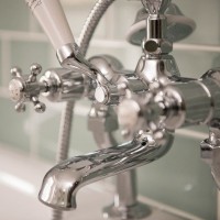 The large bathroom features a wonderful roll top free standing bath, separate shower and double vanity unit.